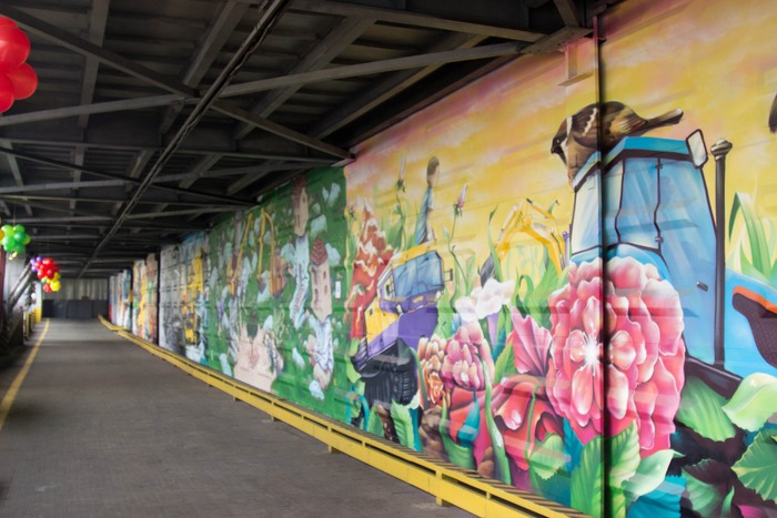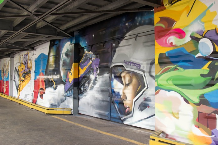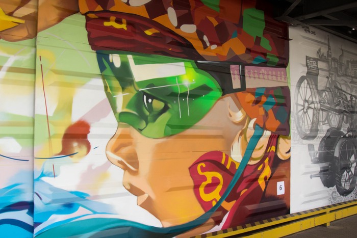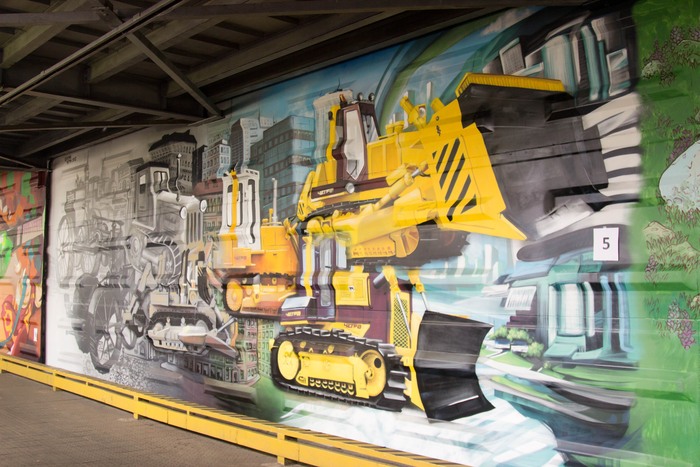 За пять дней – с 23 по 27 апреля - выделенных организаторами для нанесения на стены граффити, участники конкурса превратили один из переходов между цехами завода "Промтрактор-Промлит" в настоящий арт-объект.