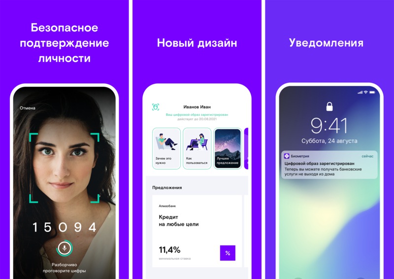 «Биометрия» — это первое защищенное отечественное мобильное приложение со встроенным алгоритмом шифрования, которое опубликовано в официальных магазинах приложений AppStore и Google Play. Приложение позволяет тем, кто ранее сдал данные в Единую биометрическую систему, не выходя из дома стать клиентом разных банков. Для того чтобы удаленно открыть счет или вклад, оформить кредит, сделать банковский перевод, нужно авторизоваться на портале госуслуг и подтвердить свои данные в Единой биометрической системе, произнеся случайно сгенерированную числовую последовательность. После этого по защищенному каналу связи запись отправляется на сравнение с шаблоном, который хранится в Единой биометрической системе. Если система опознала человека с вероятностью выше 99,99%, приложение сообщит об успешной проверке, и пользователь получит доступ к финансовым услугам.