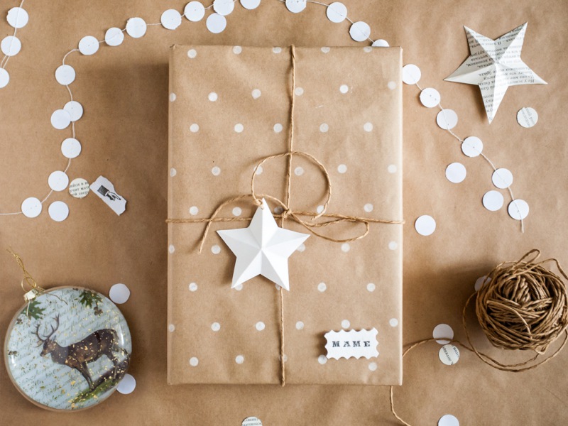 Крафтовая бумага из вторичной целлюлозы и джутовая бечёвка – прекрасный и стильный вариант.