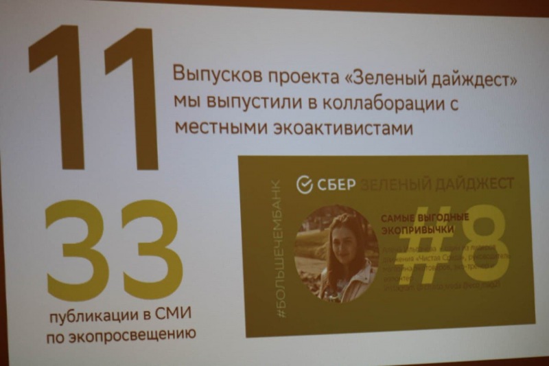 В Сбере постоянно генерируются новые проекты, большинство из которых строится на запросах клиентов банка и собственных инициативах сотрудников. Идея сокращения потребления пластика, например, привела к тому, что использованные в отделениях банка пластиковые стаканчики стали перерабатывать в шариковые ручки. Готовится к запуску проект по переработке использованных или невостребованных банковских карт во вторичное сырье, из которого будут изготавливать оконные профили для отделений Сбера. Благодаря безбумажным технологиям в прошлом году банку удалось сэкономить почти 600 млн листов бумаги. Это более 50 тысяч спасенных деревьев. Банк ставит перед собой цель увеличить к 2023 году долю отходов, отправляемых на переработку, до 40%.