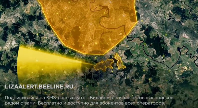 С помощью технологий билайн поисково-спасательный отряд «ЛизаАлерт» отправляет смс потенциальным свидетелям, которые определяются с помощью анализа больших данных. В сообщении содержатся данные о пропавшем человеке с фотографией, приметами, возрастом и телефоном горячей линии поисково-спасательного отряда «ЛизаАлерт», по которому можно сообщить информации о пропавшем.