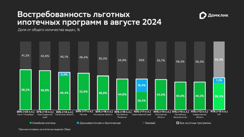Исследование Домклик: в крупнейших регионах доля льготной ипотеки остается выше 50%