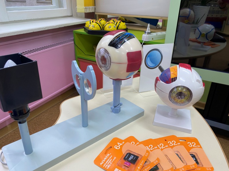 Новочебоксарский детсад «Журавлик» посещают 34 ребенка от 4 до 7 лет с особыми образовательными потребностями из-за различных нарушений зрения. Для освоения адаптированной дошкольной программы Чебоксарская ГЭС помогла закупить коррекционное оборудование: комплект цифровых микроскопов с увеличивающими ЖК-экранами и проектором, специальные электронные блокноты для слабовидящих. В набор лабораторного оборудования вошли увеличенные колбы, пипетки и другое оборудование для экспериментальных и исследовательских занятий, а также анатомическая и проекционная модели глаза, которые показывают его сложное строение и способы корректировки зрения.