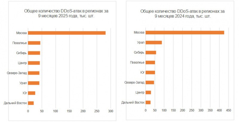 Всего с января по сентябрь 2025 года сервис Anti-DDoS зафиксировал и отразил более 560 тыс. DDoS-атак на российские компании – это на 12% меньше, чем в аналогичном периоде прошлого года. Эксперты связывают тренд сокращения атак с повышением уровня защиты заказчиков, поэтому теперь хакеры сочетают их с веб-атаками и более сложными ударами профессиональных APT-группировок для проникновения и разрушения инфраструктуры заказчика.