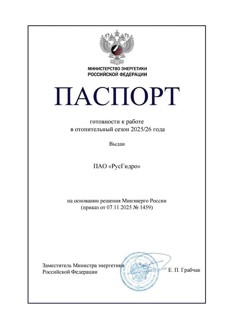Чебоксарская ГЭС подтвердила готовность к зимнему максимуму нагрузокНа основании решения Минэнерго России (приказ № 1459 от 07.11.2025) Чебоксарская ГЭС (филиал ПАО «РусГидро») готова к работе в отопительный сезон 2025-2026. РусГидро получило паспорт готовности – документ, подтверждающий, что все компании энергохолдинга, готовы к работе в условиях низких температур, когда значительно возрастает потребление электрической и тепловой энергии.