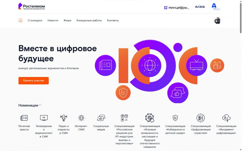 Стратегическим партнером конкурса выступает Министерство цифрового развития, связи и массовых коммуникаций Российской Федерации. Партнеры специальных номинаций — Минцифры России, «Базис» — крупнейший российский разработчик ПО для управления динамической ИТ-инфраструктурой и Альянс по защите детей в цифровой среде.