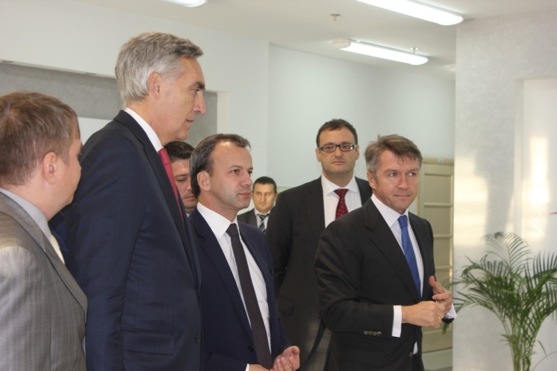 Заместитель Председателя Правительства Российской Федерации ознакомился с технологической линии завода, с перспективами реализации инновационных технологий производства и планами компании по строительству в России солнечных электростанций.
