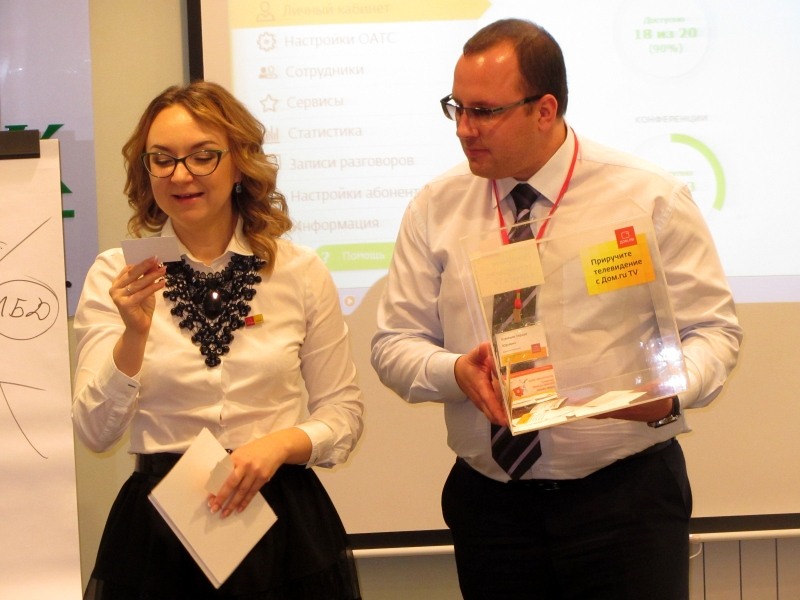 Топ-менеджеры чебоксарского филиала подробно рассказали участникам встречи про обновленную услугу «Облачная АТС 2.0» и Wi-Fi Hot Spot. И о том, как внедрение этих услуг поможет сэкономить расходы на связь и увеличить размер среднего чека на 10%.