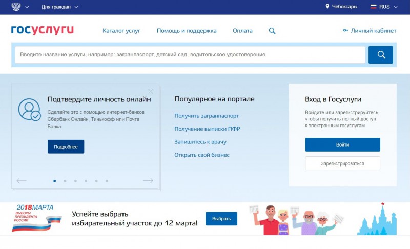 Чтобы подтвердить учетную запись через Сбербанк Онлайн необходимо авторизоваться в системе и перейти с баннера «Зарегистрируйтесь на портале Госуслуг» в форму подтверждения личных данных. После подтверждения можно получить любую нужную госуслугу, в том числе, подать заявление о включении в список избирателей любого удобного участка для голосования на выборах Президента РФ (услуга реализована Минкомсвязи РФ и ЦИК РФ и доступна до 12.03.18 включительно).