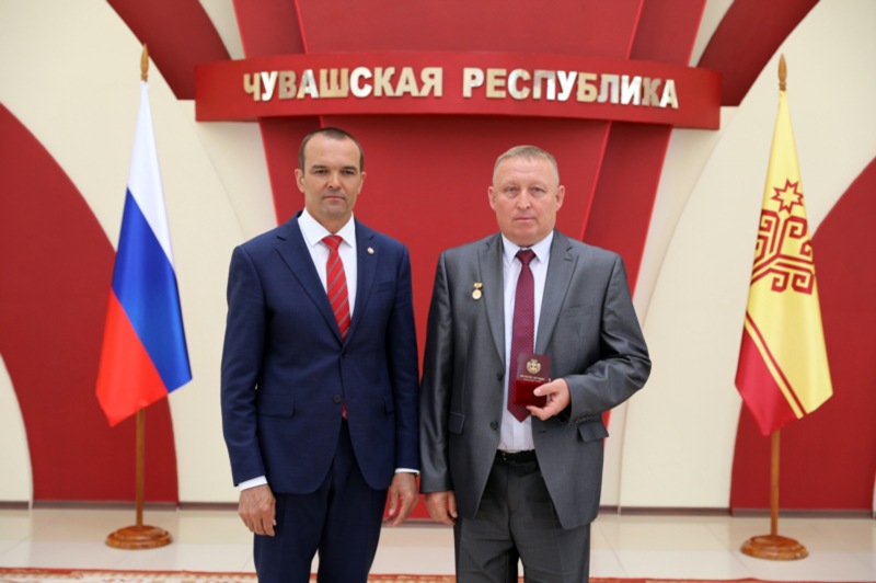 Глава Чувашии вручил почётную награду работнику филиала "Чувашэнерго"