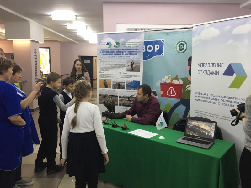 В рамках мероприятия филиал АО «Управление отходами» в г.Новочебоксарске представил свою экспозицию с участием биорепеллента – сокола балобана по кличке «Облако», демонстрацией материалов, фильма о полном цикле работы концессионных объектов, работе систем учета поступающих отходов, контроля работы техники и оборудования, выполнения этапов обработки и размещения ТКО.