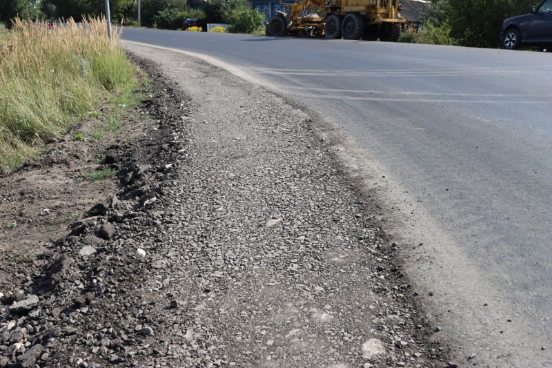 На сегодняшний день выполнен ремонт на протяженности 4,5 км из 6. До конца недели, планируется завершение ремонта на участке а.д. Кожевенное - Гарт. Устройство основания выполняется методом холодного ресайклинга толщиной до 19 см., и двухслойным устройством асфальтобетонного покрытия толщиной 11 см.