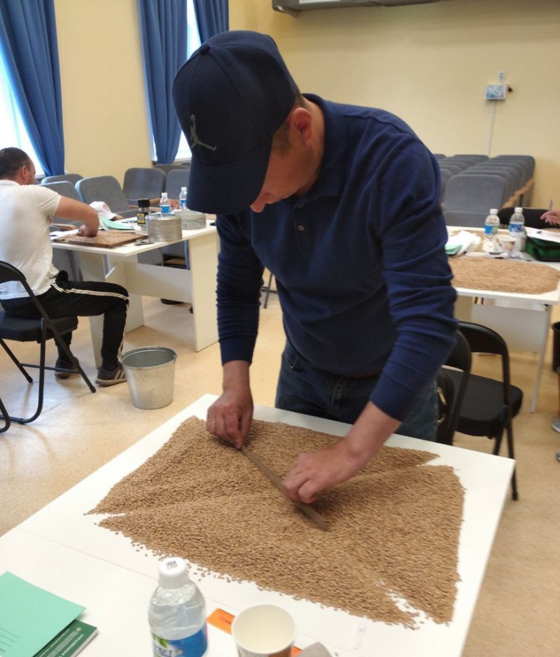 Участникам была предоставлена возможность продемонстрировать свои знания и умения не только в теории, но и на практике. На теории первая часть заданий представляла собой систему тестирования, вторая – решение теории–кейса. На теории-кейсе участникам предстояло отобрать точечные пробы зерна и сформировать объединенную пробу для дальнейшего определения его качества. На столе изучить свежесть зерна органолептическим методом (сенсорно) по цвету, запаху, вкусу и блеску. Здесь же определить зараженность вредителями по средствам набора сит и просмотра через лупу.