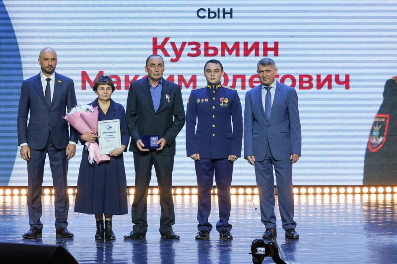 За достойное воспитание сыновей медаль общественного признания «Отец солдата» из рук Главы получили: Олег Репкин – за подполковника Артемия Репкина, Евгений Холкин – за старшего лейтенанта Александра Холкина, Олег Кузьмин – за младшего лейтенанта Максима Кузьмина, Иван Исаев – за младшего лейтенанта Михаила Исаева, которые отличились в ходе проведения специальной военной операции.