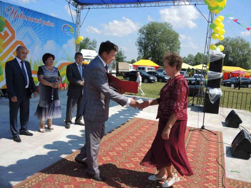 За высокие производственные показатели в сельскохозяйственном производстве и многолетний добросовестный труд в агропромышленном комплексе района присвоено почетное звание «Заслуженный механизатор сельского хозяйства Чувашской Республики» Анатолию Евдокимову – механизатору ООО «ВДС», почетное звание «Заслуженный работник сельского хозяйства Чувашской Республики» - Михаилу Геннадьеву – аппаратчику шестого разряда по производству белковых обогатителей кормов Государственного унитарного предприятия. Кроме того, Почетное звание «Заслуженный работник культуры Чувашской Республики» - Луизе Петровой, директору МБОУ ДОД Цивильская ДШИ». Вручена Благодарность Главы Чувашской Республики Юрию Клементьеву – механизатору КФХ Хорошавина А.В. Почетной грамотой Министерства сельского хозяйства Чувашской Республики и денежным призом были удостоены 15 лучших работников сельского хозяйства района. Четыре участника ведомственной целевой программы «Поддержка начинающих фермеров на период 2012-2014 годы» получили государственную поддержку в форме гранта на создание и развитие КФХ и единовременной помощи на бытовое обустройство. Также вручен сертификат на право безвозмездного получения земельного участка четырем многодетным семьям. Заместитель Председателя Государственного Совета Чувашской Республик Олег Мешков вручил Почетные грамоты Государственного Совета Чувашской Республики, Благодарственные письма Чувашского регионального отделения Партии «Единая Россия».