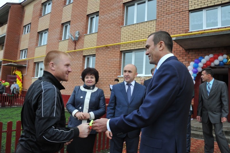В деревне Тувси Глава республики принял участие в торжественном мероприятии, посвященном вводу в эксплуатацию 18-квартирного дома №2 по ул. Октября, построенного для пострадавших от взрыва бытового газа в январе этого года.