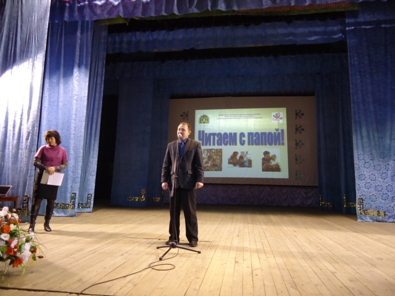 В культурно-досуговом центре собрались читающие папы, бабушки, дети, библиотекари. С приветственным словом выступил начальник отдела культуры, спорта и архивного дела администрации района Александр Самсонов, отметив важность семейного воспитания, семейного чтения, общения с детьми.