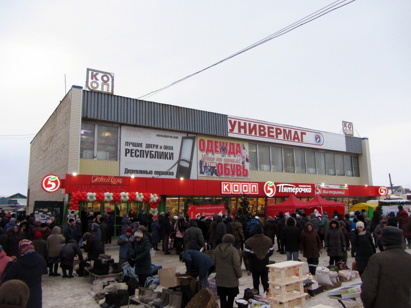 В 8:45 , еще до официального открытия и торжественного перерезания красной ленточки в 100-й по счету в Чувашии магазин хлынул поток покупателей. Такого единовременного количества посетителей в местных магазинах еще не приходилось видеть. Несмотря на холодный ветер с дождем и гололед на улице, в торговом зале новой «Пятерочки» собралось практически все взрослое население села.
