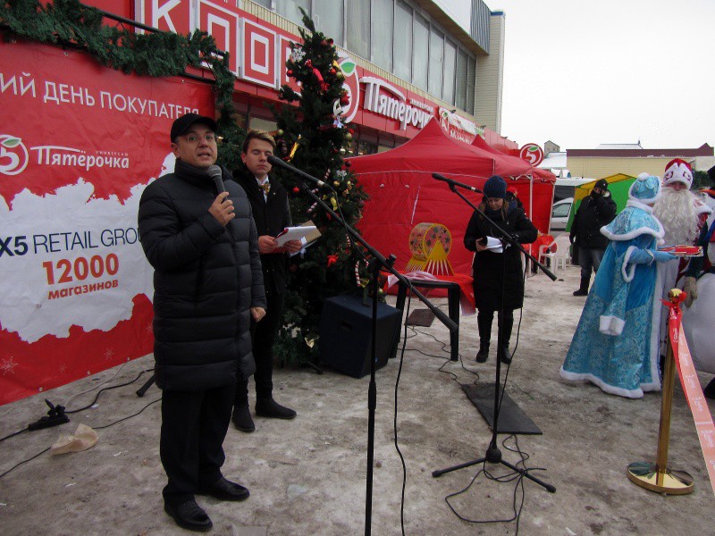 В 9:30 под аплодисменты собравшихся и фейерверки из разноцветных звездочек красную ленту перед универсамом торжественно перерезали директор Приволжского дивизиона торговой сети «Пятерочка» Эмиль Багиров, заместитель председателя правления Чувашпотребсоюза Андрей Данилов, заместитель главы районной администрации, начальник отдела организационно-контрольной и кадровой работы Николай Павлов и председатель Совета Урмарского Райпо Сергей Харитонов.