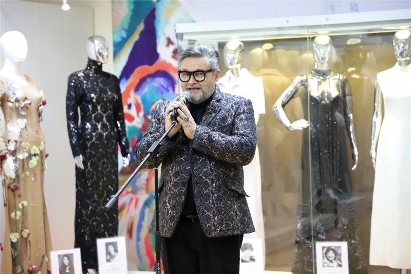Историк моды Александр Васильев лично провел экскурсию, рассказал об экспонатах и их истории. Многие годы он коллекционирует яркие сценические наряды, в которых блистали артисты. В экспозиции представлено более 50 костюмов звезд эстрады - Аллы Пугачевой, Софии Ротару, Людмилы Гурченко, Валентины Толкуновой, Любови Успенской, Ларисы Долиной, Тамары Гвердцители и других артистов. "Здесь вся история страны в образах моды и в образах музыки", - отметил Александр Васильев.