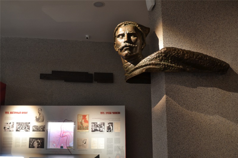 Прежняя экспозиция была создана еще в семидесятые годы. В ходе реставрации в музее сохранили знакомые многим витраж "Красная Армия", чеканное панно "Боевые действия Чапаевской дивизии", бюст Чапаева. Обновлен кинозал, он воссоздает советский период. Здесь будут показывать документальные картины, раскрывающие новые факты о легендарном начдиве.