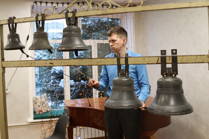 Илья Михайлов для гостей провел интерактивное занятие по игре на колоколах. Дети и взрослые с удовольствием познакомились с историей колоколов и различными видами звонов.