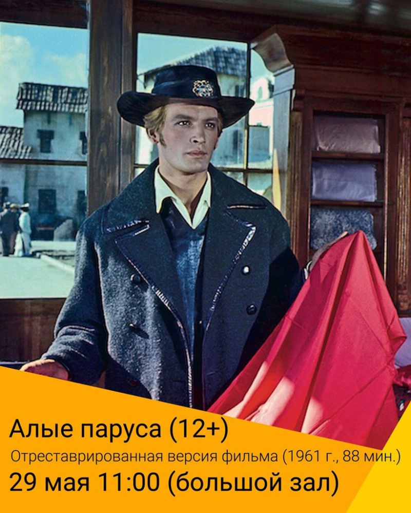 Зрители получат возможность посмотреть отреставрированную версию фильма "Алые паруса" киностудии "Мосфильм" (12+), 16 серий мультипликационного сериала "Ну, погоди!" (0+), мультфильм "Маугли" производства "Союзмультфильм" (0+).