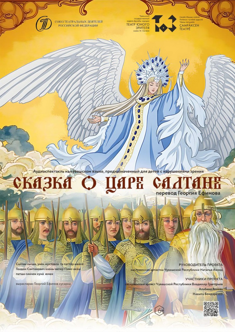Новый проект Театра юного зрителя им. М. Сеспеля по созданию аудиоспектакля «Салтан патша ҫинчен хунӑ юмах» (6+) реализован под руководством заслуженной артистки Чувашской Республики Натальи Ахмед при поддержке Союза театральных деятелей России. Об этом сообщается в пресс-релизе Министерства культуры, по делам национальностей и архивного дела Чувашской Республики.