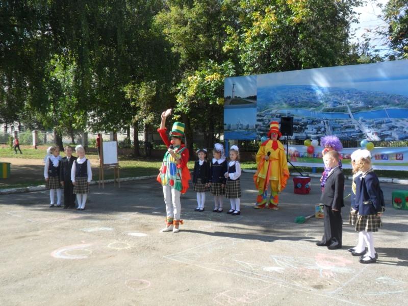 Как сказано в пресс-релизе на сайте Администрации Московского района г. Чебоксары, детей ждала программа изрядная, весёлая, незаурядная. Герои праздника – Энциклопедия, Букварь, Петрушка и Веселушка – поздравили всех гостей с Днём знаний. Энциклопедия поучала Букваря и хотела передать все свои знания первоклассникам. Петрушка и Веселушка знакомили детей с творческими уроками. На уроке рисования дети смогли почувствовать себя художниками и подарили зрителям рисунок «Солнце». На уроке музыки дети играли на разных музыкальных инструментах и спели весёлую песню. Также дети освоили уроки танца, где все исполнили первобытный танец «Тумба-юмба», на театральном уроке вспомнили каникулы в деревне, поставили и показали сказку «Утро в деревне».