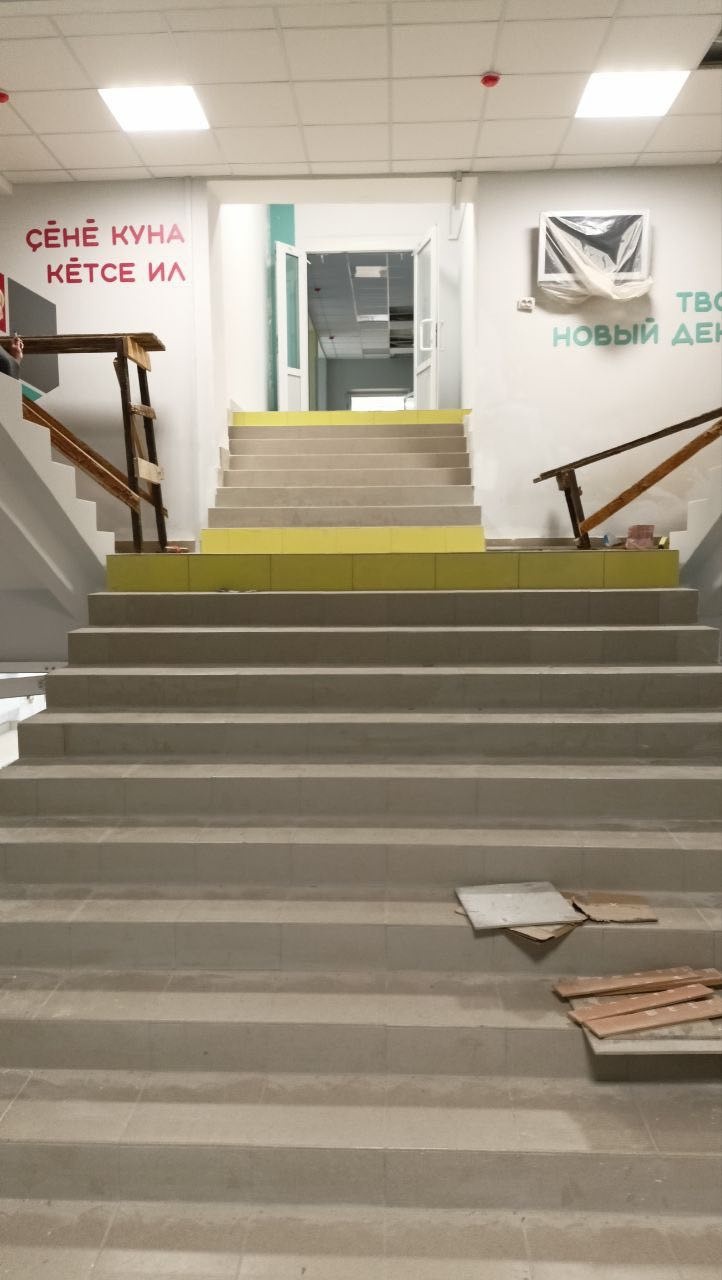 На сегодняшний день объем выполненных работ в школах 28 и 24 составляет более 60%. Во всех учебных кабинетах подготовлены полы к укладке линолеума. Выполнена фасадная часть лицевой стороны здания. Пол коридора 2 и 3 этажей выложен плиткой. Ведутся работы по установке пожарной сигнализации и вентиляции.