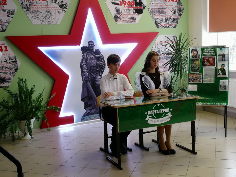 Почетное право первыми сесть за "Парту Героя" предоставили ученику 7А класса, отличнику учебы, призеру городской олимпиады по истории, активисту Артему Молтушкину и ученице 9 б класса, призеру городской олимпиады по чувашскому языку, участнице творческих школьных и городских конкурсов Анастасии Мартышкиной. Ребята произнести клятву, признались, что для них это - огромная честь и они этим гордятся.