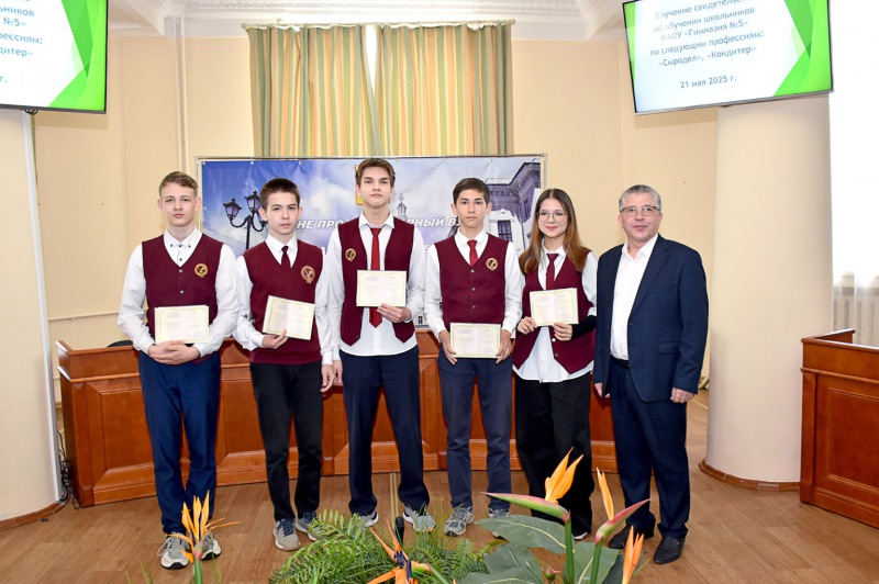 В Чувашском государственном аграрном университете состоялась торжественная церемония вручения свидетельств о получении рабочих профессий 11 старшеклассникам МАОУ «Гимназия №5» г. Чебоксары. Учащиеся 9-10 классов успешно освоили программы профессионального обучения по двум направлениям: «Сыродел» и «Кондитер». Об этомсообщается в пресс-релизе Министерства сельского хозяйства Чувашской Республики.