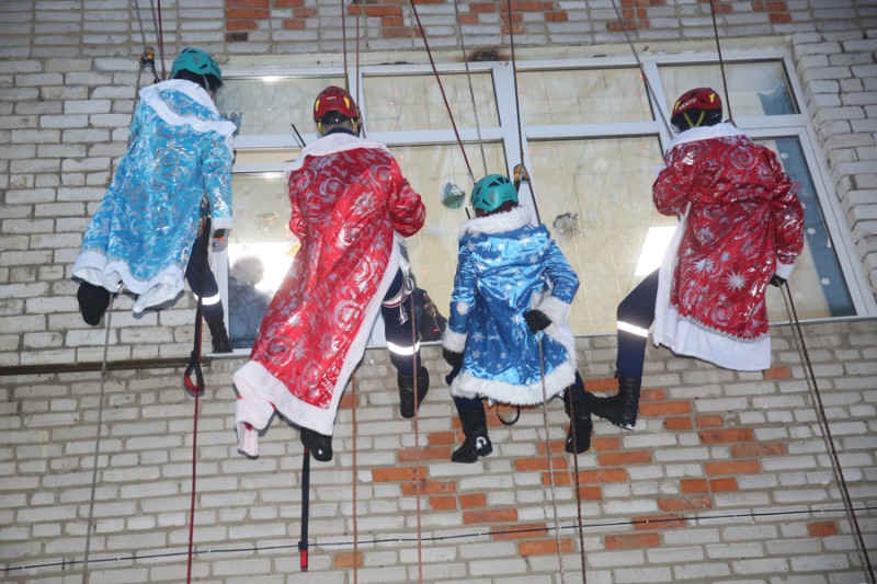 Десант Дедов Морозов спустился с крыши в "НеШколу" к детям