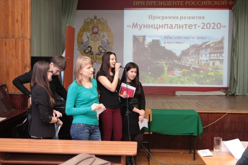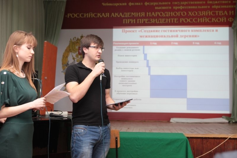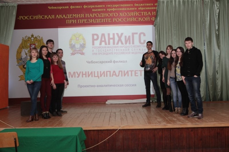 27 марта 2014 года в актовом зале Чебоксарского филиала Российской академии народного хозяйства и государственной службы состоялся финальный этап проектно-аналитической сессии «Муниципалитет». Формат проектно-аналитической сессии – новая и экспериментальная форма проведения занятий. Студентам четвёртого курса специальности «Государственное и муниципальное управление» была предложена конкретная проблемная ситуация, сложившаяся в муниципалитете – пригороде одной из европейских столиц. В течение предыдущей недели студенты последовательно разбирали эту конкретную ситуацию при помощи современных инструментов менеджмента. Финальный этап представлял собой защиту командных проектов – четырёхлетних программ развития муниципалитета в присутствии «избирателей» (студентов младших курсов) и «экспертов-инвесторов» с последующим голосованием.