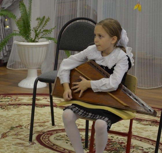 Небольшой рассказ ведущей концерта Кожановой Ирины Рахимовны познакомил ребят с устройством и способами извлечения звука на этом древнейшем музыкальном инструменте. Дети смогли назвать многие музыкальные инструменты, которые им знакомы, но гусли звончатые они видели и слышали впервые.
