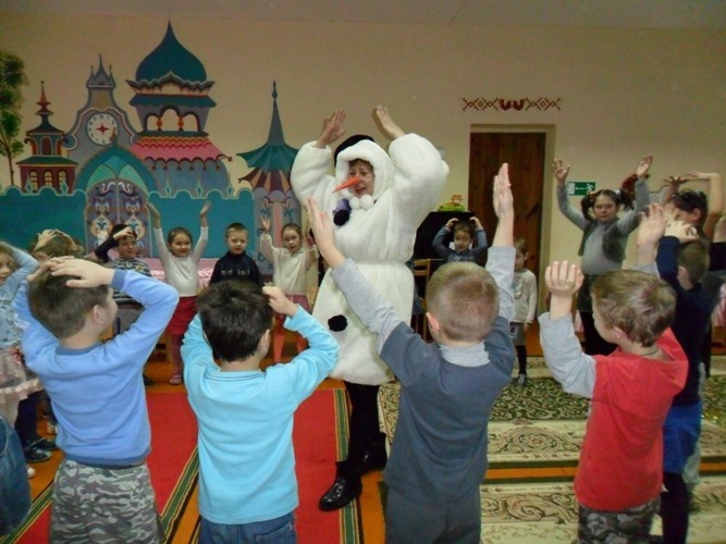 Детвору еще раз поздравили с наступившим новым годом сказочные герои – Веселый снеговик, Котенок и Мышка. Затем ребята дружно позвали Дедушку Мороза и Снегурочку, но оказалось, что из-за теплой погоды, самый главный зимний волшебник заболел и начал таять, поэтому его срочно отправили на Северный полюс и праздник продолжился без него. Но дети нисколько не расстроились, потому что Снегурочка приготовила для них много интересных игр и конкурсов, в которых они приняли самое активное участие.
