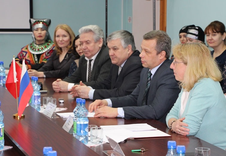 19 января в конференц-зале корпуса «Г» Чувашского государственного университета имени И.Н. Ульянова состоялась встреча руководства, сотрудников, профессорско-преподавательского состава и студентов вуза с делегацией Турецкой Республики. В составе делегации – вице-консул Республики Турция в г. Казань Осман Гёктюрк, директор Центра изучения Турции института имени Юнуса Эмре Ихсан Демирбаш, переводчик Генерального консульства Турецкой Республики в Казани Анатолий Иванов.