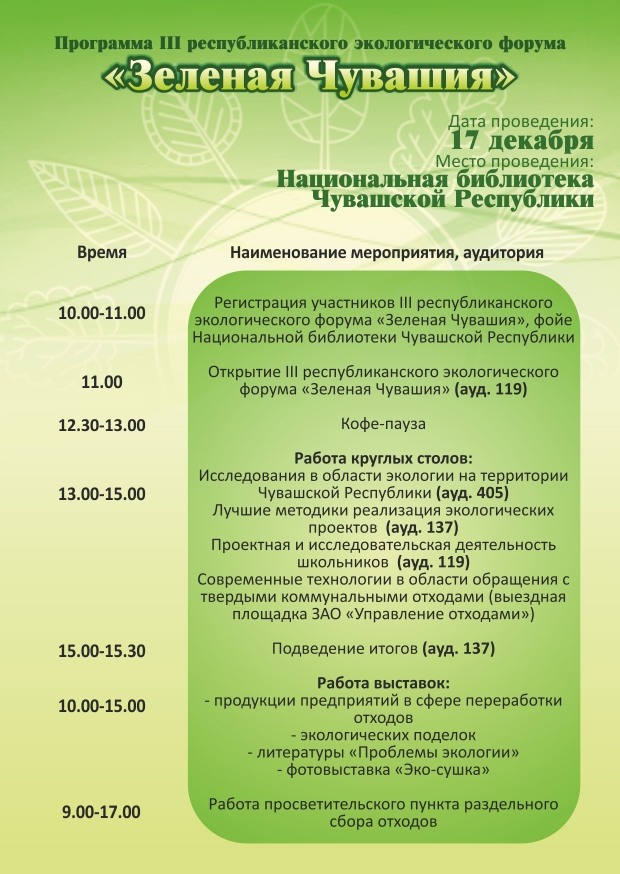 17 декабря в Национальной библиотеке Чувашской Республики пройдет III республиканский экологический форум "Зеленая Чувашия".