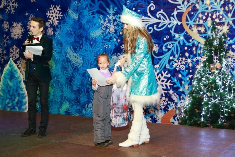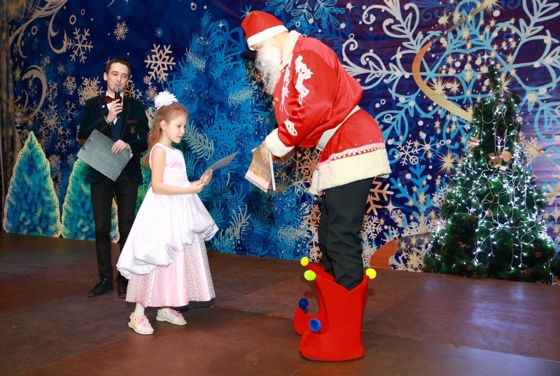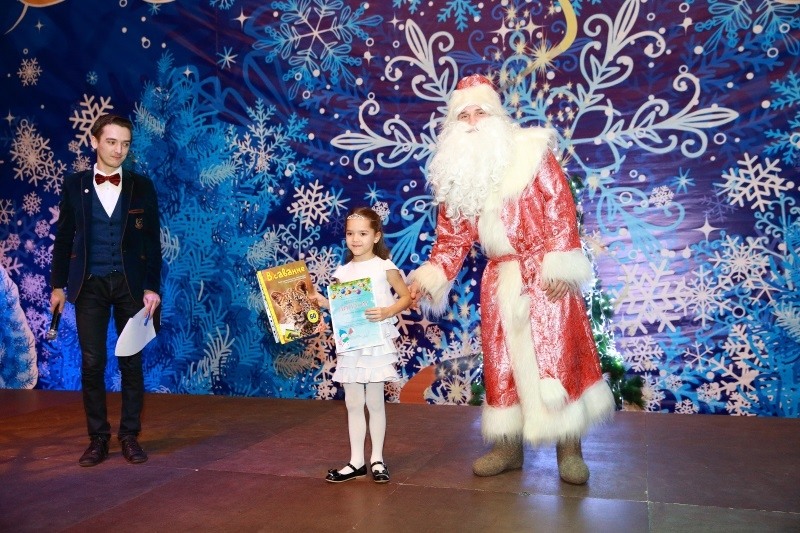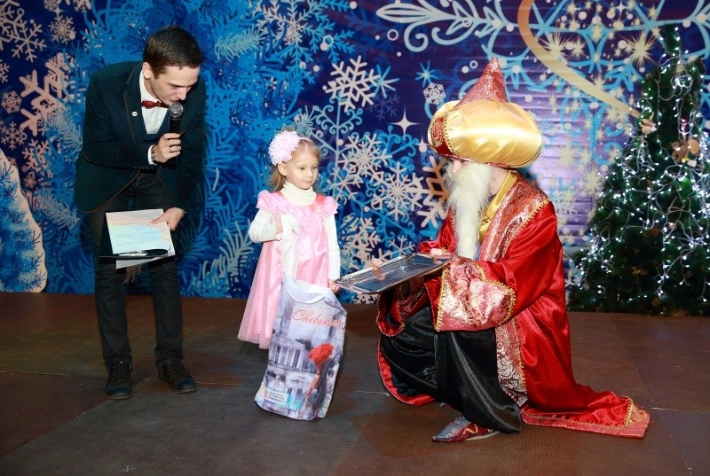 Для награждения участников и победителей конкурсов пригласили на новогоднее представление в Академию волшебства, где каждый смог почувствовать приближение праздника и окунуться в сказку. А после возле елки "наоборот" прошла большая развлекательная программа. Дети играли в игры, водили хороводы и, конечно же, познакомились с Дедом Морозом и Снегурочкой.