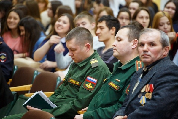 Начальник отдела подготовки, призыва и набора граждан на военную службу Военного комиссариата Чувашской Республики Сергей Козюра и начальник пункта отбора на военную службу по контракту Павел Васюков затронули вопросы прохождения военной службы, рассказали о мерах, принимаемых руководством страны по укреплению Вооружённых Сил. Выступая перед молодежью, они подчеркнули "что только труд и знания могут нам дать будущее". Отдельные слова благодарности были адресованы преподавателями и сотрудниками института, которые не один год отдали службе в Вооруженных Силах Российской Федерации и отмечены правительственными наградами за безупречную службу.