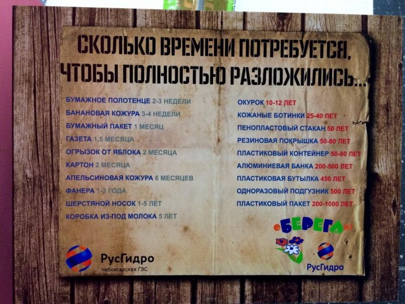 Завершилась акция установкой на прибранной территории специальных табличек с информацией о том, сколько времени разлагается в природе различный мусор, а также призывом: «Пожалуйста, не сорите! Здесь убирали дети». Победители конкурсов получили призы от Чебоксарской ГЭС, а каждый волонтер – памятный подарок в честь 10-летия «оБЕРЕГАй» в Новочебоксарске.