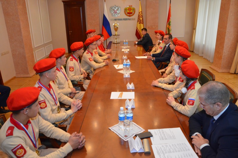 28 сентября в Доме Правительства Глава Чувашской Республики Михаил Игнатьев встретился с победителями окружного финала военно-спортивной игры «Зарница Поволжья».