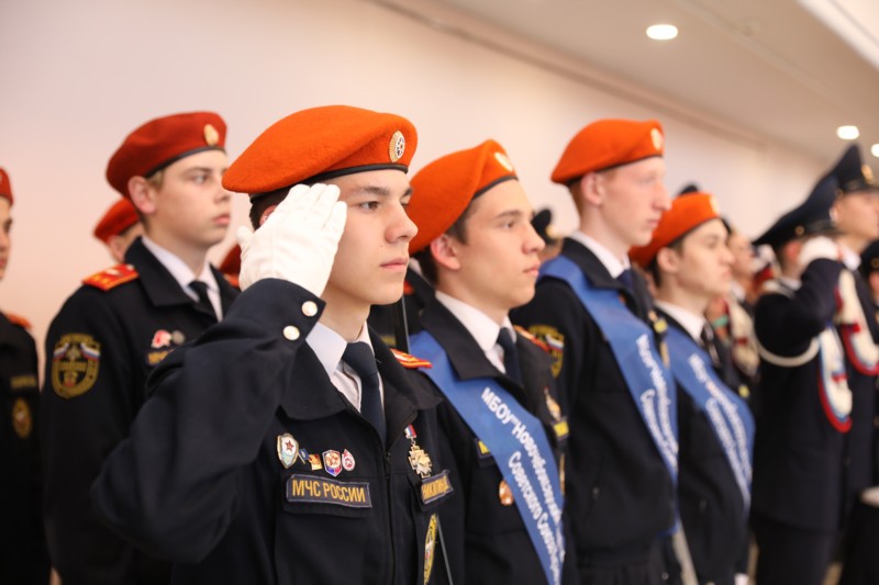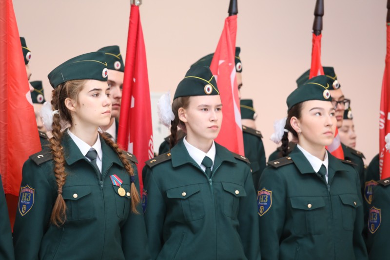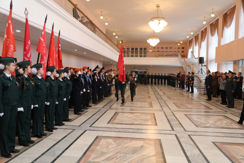 От имени поколения героев к собравшимся учащимся обратился ветеран Великой Отечественной войны Юрий Петров, сражавшийся против немецких захватчиков в составе Западного фронта, 1-го Белорусского фронта, а также участвовавший в штурме Кенигсберга. «У нас в России могучая армия с современным вооружением. И этой армией должны управлять знающие, мужественные, храбрые бойцы. Прошу вас изучайте науки, изучайте армейское дело и помните, что именно Красная армия разбила фашизм», – призвал он молодежь.