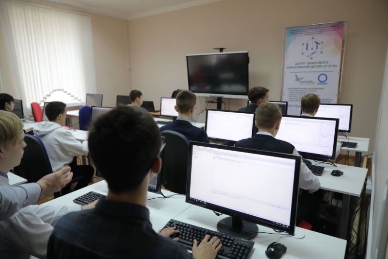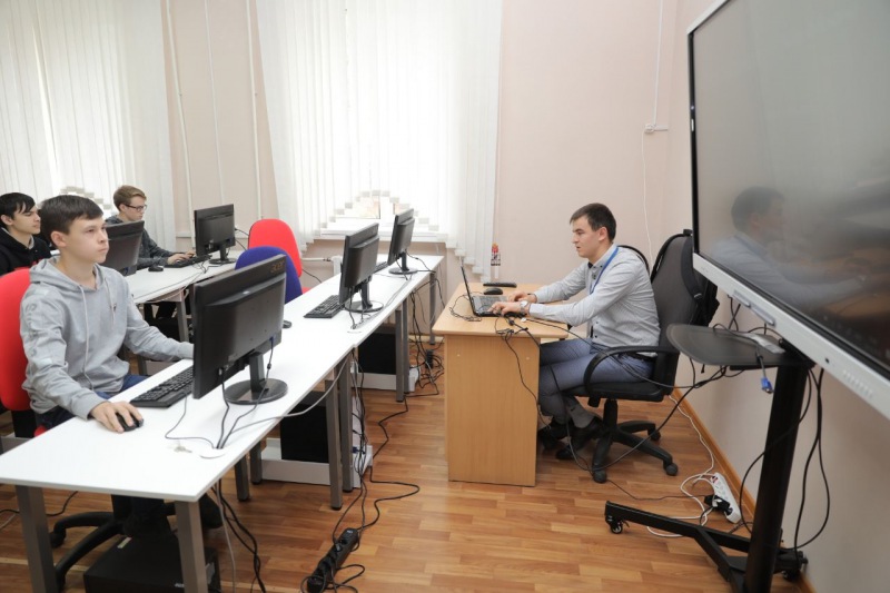 На первом этаже здания ребята осваивают навыки программирования. Обучение ведется по направлениям "программирование на Python" (Яндекс. Лицей) и "мобильная разработка" (IT ШКОЛА Samsung). В дальнейшем планируется обучение по 7 направлениям, востребованным в этой сфере.