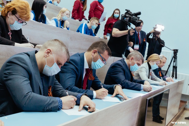 Центральной площадкой по традиции стала ЧГУ им. И.Н. Ульянова. На центральной площадке "Диктант Победы" в числе 600 участников писали Глава Чувашской Республики Олег Николаев и депутат Государственной Думы Алена Аршинова.