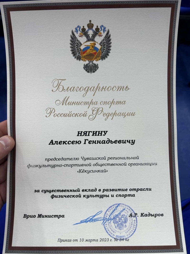 На соревновании председатель ЧРФСОО "Кекусинкай" Нягин Алексей Геннадьевич (тренер Эдуарда Тябова) был удостоен Благодарности Министра спорта Российской Федерации за существенный вклад в развитие отрасли физической культуры и спорта.