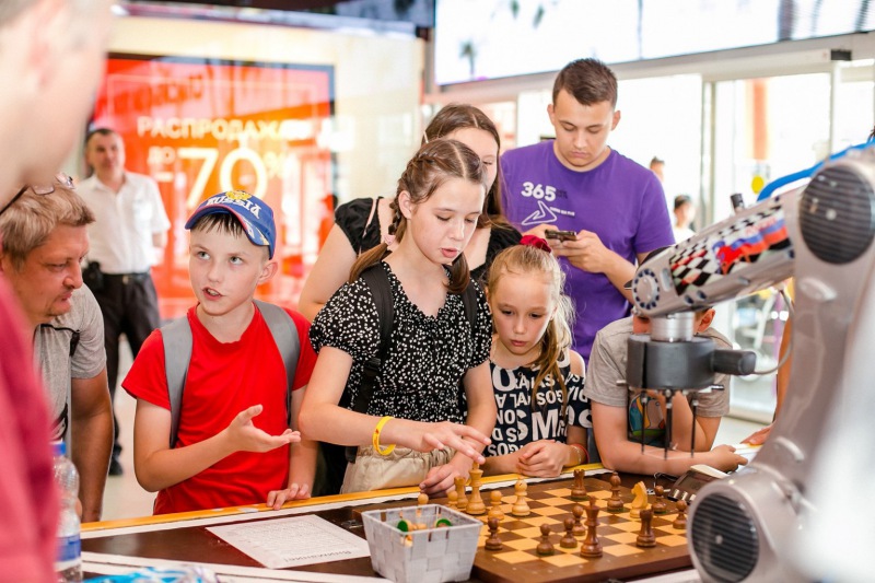 Напомним, что в дни проведения "Шоколадного кубка", с 3 по 11 августа, в ТЦ "Мадагаскар" установлен шахматный робот. Одновременно он может проводить 3 партии.