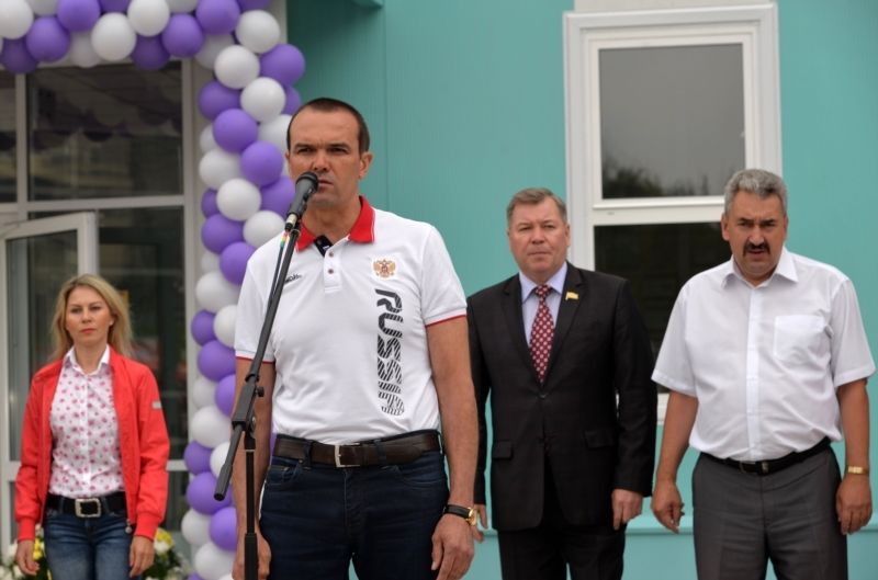 После перерезания символической красной ленты гости ознакомились с новым Центром, осмотрели залы для занятий спортом.