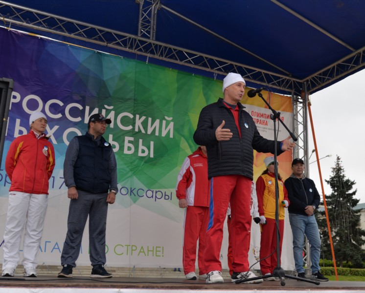 Как сказано в пресс-релизе Администрации Калининского района г. Чебоксары, старт был дан на Красной площади. От имени Главы республики Михаила Игнатьева всех собравшихся приветствовал Председатель Государственного Совета Чувашской Республики Валерий Филимонов. Помимо него, колонну любителей активного отдыха возглавили исполняющий обязанности главы г. Чебоксары Николай Владимиров, заслуженные мастера спорта СССР и России Елена Николаева, Олимпиада Иванова, Алина Иванова и многие другие известные спортсмены и тренеры.