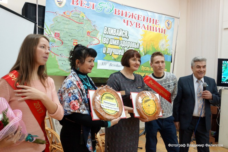Один из организаторов вечера Николай Плотников, член Общественной палаты Чувашской Республики, пожелал всем участникам доброго здоровья и призвал к новым свершениям на велосипедном поприще в следующем году. Традиционное чаепитие после бала завершили … поеданием пирогов, выпеченных по спецзаказу в магазине «Смак» в виде велосипедных колес с надписями: «3000км», «Никитушка, не гони-ка так!» и «35000км».